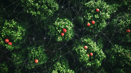 3d illustration of polygonal background with green plants and red berries