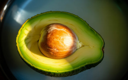 Explore the delicious appeal of fresh avocado halves on a dark background. Perfect for health-focused recipes and culinary creativity.