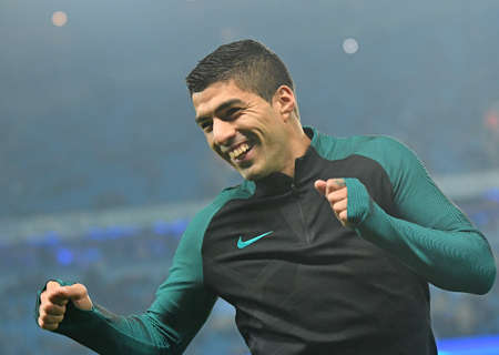 MANCHESTER, ENGLAND - NOVEMBER 1, 2016: Luis SUarez of Barcelona pictured prior to the UEFA Champions League Group C game between Manchester City and FC Barcelona at City of Manchester Stadium. Copyright: Cosmin Iftode/Picstaff