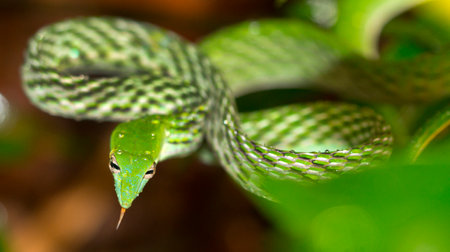 Close up of Green pit viper snake in nature, Thailand.