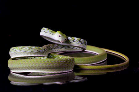 Asian vine snake / Ahaetulla prasina isolated on black background