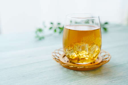 Rowan tree flower tea in a cup. Traditional folk medicine. Drink from nature.