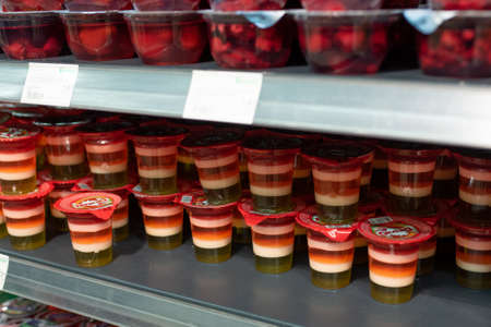 Minsk, Belarus - September 27, 2019: Supermarket with various jellies for any purpose. For any purpose.
