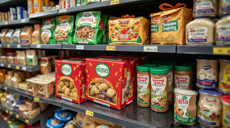Grocery store shelves stocked with cookies, nuts, and spreads for your delicious baking needs