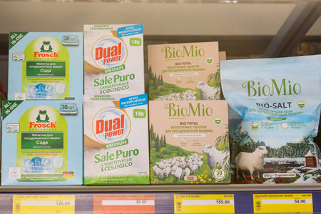 March 31, 2021 Balti Moldova, Supermarket, department of cleanliness and household chemicals. Illustrative editorial.