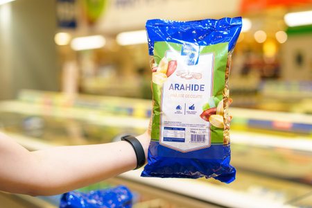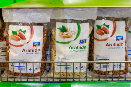 Peanuts on the store shelf. Illustrative editorial. May 12, 2022 Balti Moldova