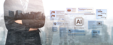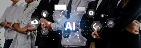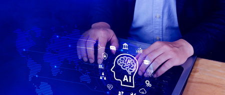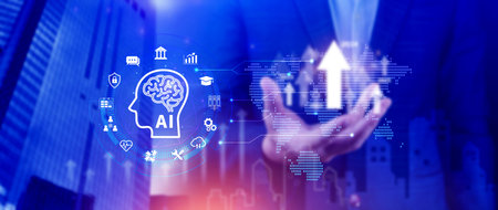 AI or Artificial intelligence business concept, technology business icon and industry digital marketing, reach of artificial intelligence to help humans development