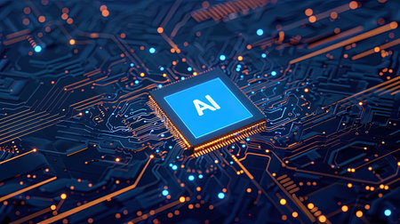 Artificial intelligence chip glowing on a futuristic circuit board, representing the power of ai in modern computing