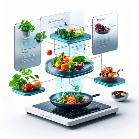 Discover a modern kitchen equipped with advanced technology, featuring a digital interface for seamless cooking and meal planning. The sleek design enhances the culinary experience.