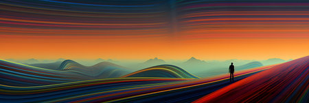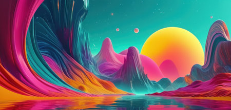 3d illustration of abstract background with multicolored waves and mountains