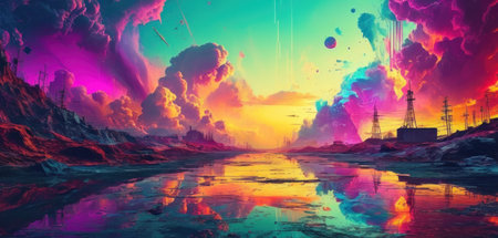 abstract dreamscape with dynamic, swirling patterns and vibrant colors. Generative AI
