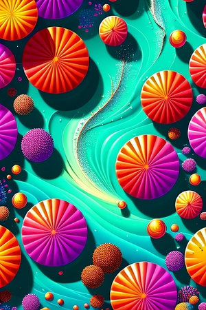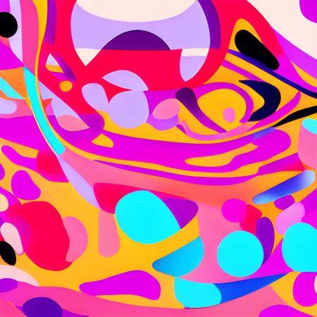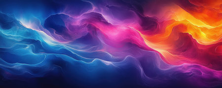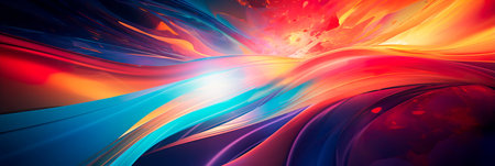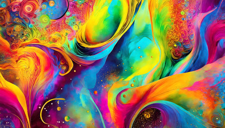 Vibrant abstract artwork with multicolored flowing shapes and glowing patterns