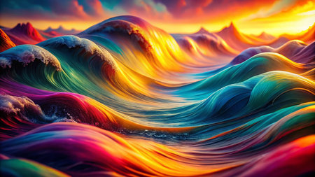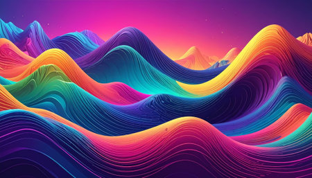 Vibrant abstract wave pattern with gradient shades of colors. Ideal for modern design, creative projects, and artistic backgrounds.