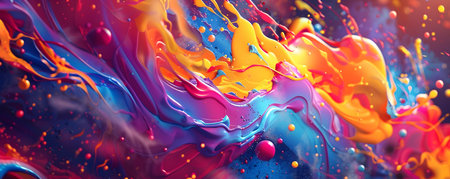 This captivating abstract artwork features dynamic swirls and colorful splashes, embodying the essence of fluid motion and vibrant energy, perfect for creative projects.