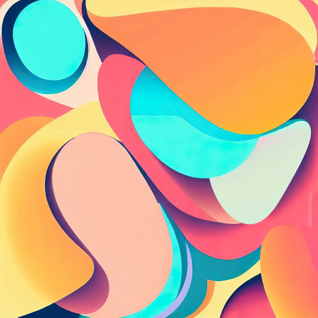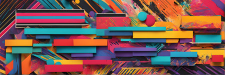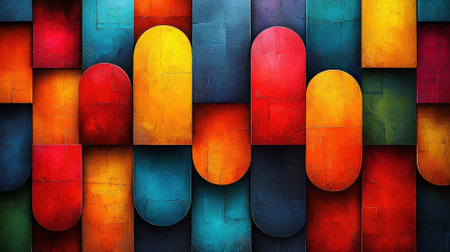 This vibrant abstract artwork features geometric shapes in bold colors, perfect for creative projects. Ideal as a background or for artistic inspiration, its dynamic pattern captivates the viewer's eye.