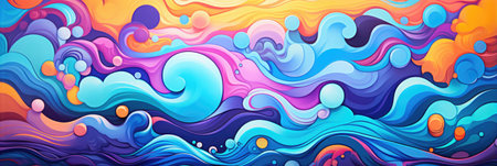 Children's abstract bright colored wave background. horizontal banner