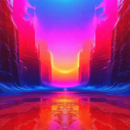 3d render of abstract background with neon rainbow colors. Futuristic technology style.