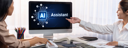 Human interact with AI artificial intelligence virtual assistant chatbot in concept of AI artificial intelligence prompt engineering, LLM AI deep learning to use generative AI for work support. UUID
