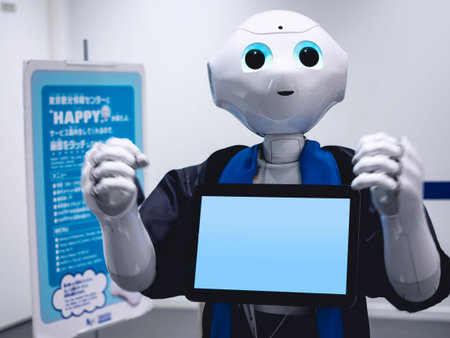 Tokyo; Japan - August 10 2024: robot in a bar restaurant in the Shibuya district