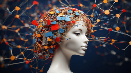 Abstract visualization of a child's mental processes with glowing neural nodes, showcasing advanced technology and human inspiration. Generated A.I.
