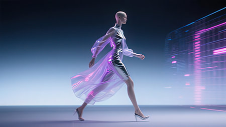 Futuristic female model under neon light