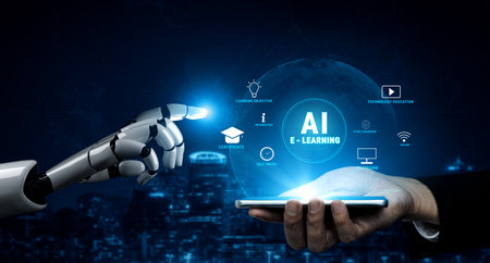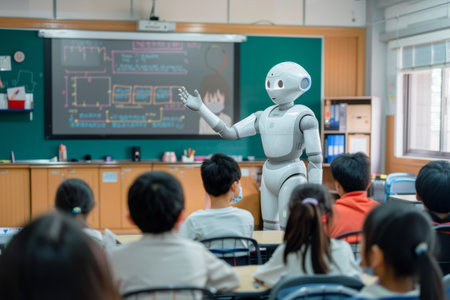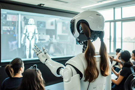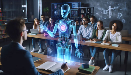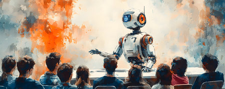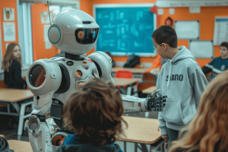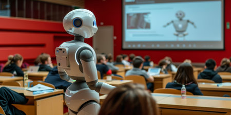 Robot is teaching student class, AI generated image