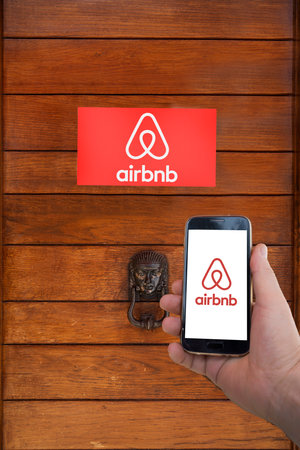 Milan, Italy - August 10, 2017: Airbnb website homepage. It is an online marketplace and hospitality service. Airbnb logo visible.