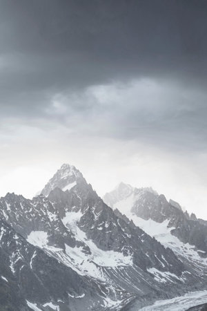 Mont Blanc massif, dramatic landscape in the French Alps, Eastern France