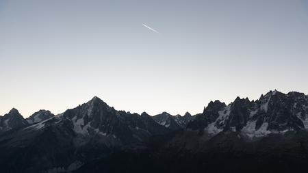 Contrail over mountain peaks in the french alps, Tour de Mont Blanc