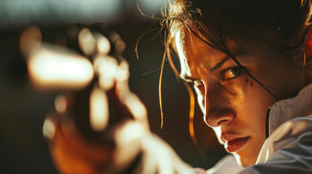 modern pentathlete taking aim in the shooting event generative ai