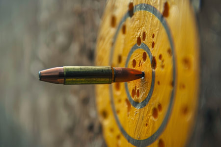A close-up of a bullet hitting a target with precision and force, A bullet piercing through a target