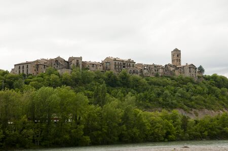 view from the window, photo as a background , in ainsa sobrarbe , huesca aragon province