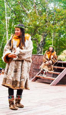 PETROPAVLOVSK, KAMCHATKA, RUSSIA - NOVEMBER 4, 2018: Folk ensemble performance in dress of indigenous people of Kamchatka. The holiday Northern aboriginal Koryak was Hololo.