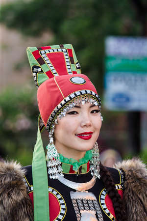 PETROPAVLOVSK, KAMCHATKA, RUSSIA - NOVEMBER 1, 2020: Kamchatka aboriginal koryak. Folk ensemble performance in dress of indigenous people of Kamchatka. Sity day on Petropavlovsk-Kamchatsky