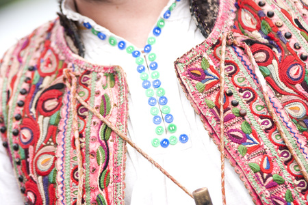 Close up of legs of young Romanian female dancers in traditional folkloric costume. Folklore of Romania