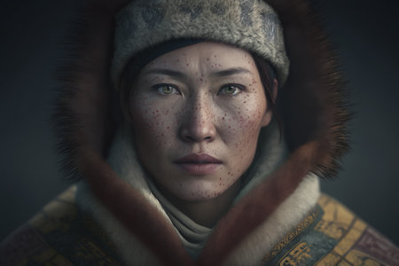 Portrait of woman from Nenets tribe in Siberia. ai generated art