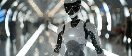 A futuristic robot with sleek design and glowing features, representing advanced technology and artificial intelligence. image conveys innovation
