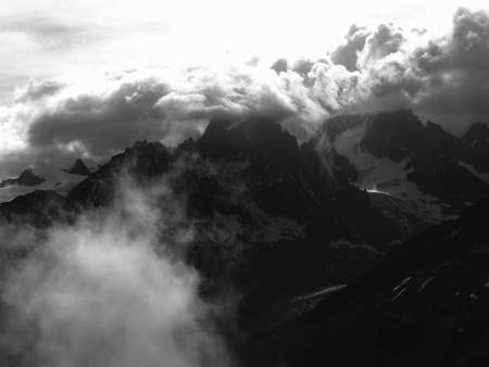 Mountains in the clouds. Caucasus, Dombay, Russia