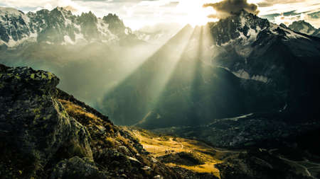 Sun rays from mountain peaks