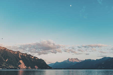 Sunset at Leman lake Geneva near Clarens Montreux Switzerland