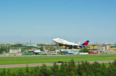 Tallinn, Estonia, June 5, 2010 - Delta Airlines Boeing 747-451 departing from Tallinn