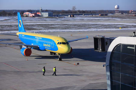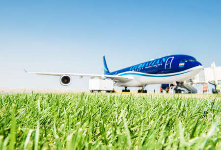 Baku - AUGUST 27, 2016: AZAL airplane boarding. on August 27 in Baku, Azerbaijan. Heydar Aliyev airport is the largest in Azerbaijan