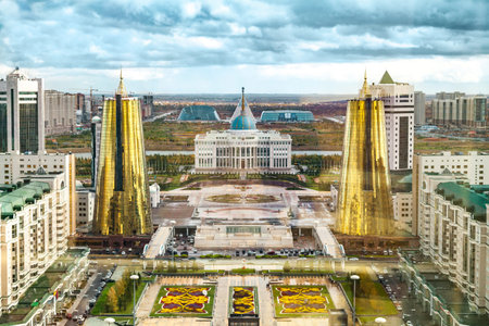 View from the Bayterek Tower of Nur-Sultan Astana. Nur-Sultan is the city of Kazakhstan and the second-largest city in the country.