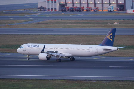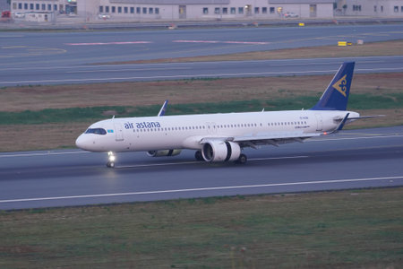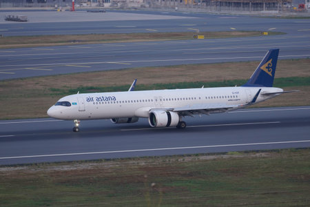 ISTANBUL, TURKIYE - JUNE 21, 2023: Air Astana Airbus A321-271NXLR (10427) landing to Istanbul International Airport