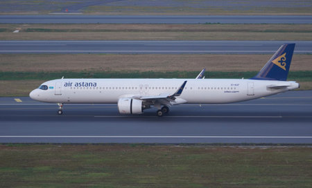 ISTANBUL, TURKIYE - JUNE 21, 2023: Air Astana Airbus A321-271NXLR (8980) landing to Istanbul International Airport