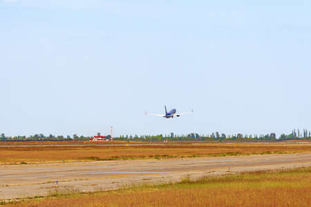 Baku - AUGUST 27, 2016: Airplane taking off on August 27 in Baku, Azerbaijan. Heydar Aliyev airport is the largest in Azerbaijan