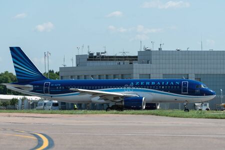 July 2, 2019, Moscow, Russia. Airplane Airbus A320-200 AZAL Azerbaijan Airlines at Vnukovo airport in Moscow.