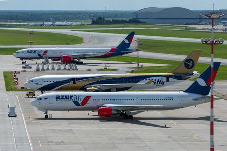 MOSCOW, RUSSIA - JULY 08, 2022: Sheremetyevo International Airport is the busiest airport in Russia. Airlines fleet at Moscow. airport infrastructure at Sheremetyevo airport