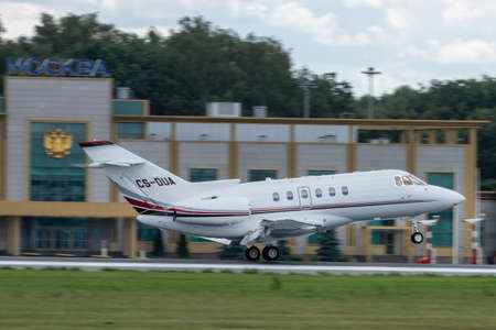 July 2, 2019, Moscow, Russia. Airplane Raytheon Hawker 750 NetJets Europe Airline at Vnukovo airport in Moscow.