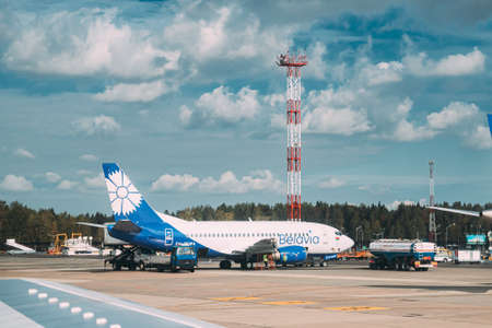 Minsk, Belarus. Aircrafts Planes Of Airlines Belavia Stand At Minsk National Airport - Minsk-2 Terminal